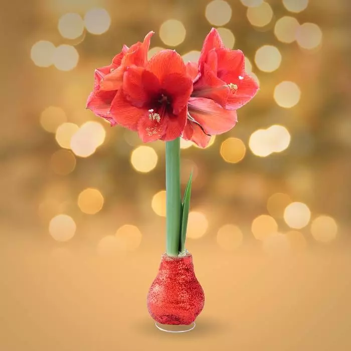 PrĂŞte Ă l’emploi cette Amarillys devra ĂŞtre posĂ©e dans un lieu lumineux et tourner rĂ©gulièrement pour stimuler la croissance de ses magnifique fleurs qui vont Ă©clore.