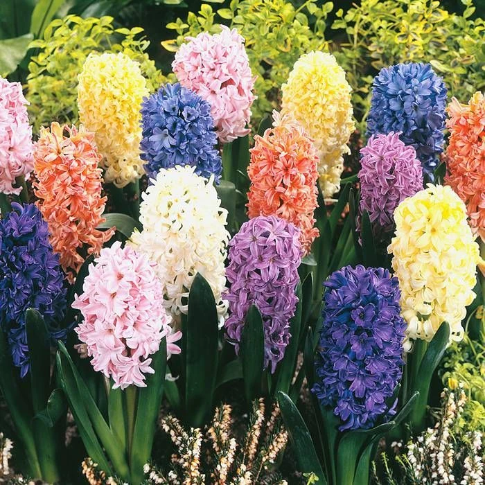 Animez vos bordures ce printemps avec notre doux et intense parfum de Jacinthes, les fleurs sont de forme conique et sont composées de petits groupes de fleurons. Cette jolie nurserie mixte de couleurs peut être plantée dans votre jardin le long d’une allée par exemple mais aussi dans les jardinières de fleurs pour animer votre balcon.