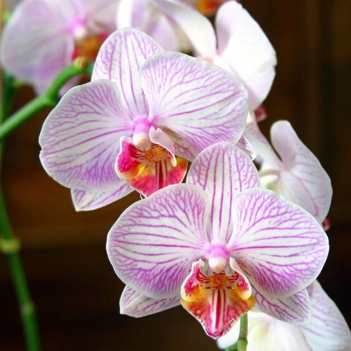 Les Orchidées ou Phalaenopsis sont appelées parfois les plantes « Papillons » parce que leurs splendides fleurs ressemblent aux papillons nocturnes durant leur vol. Cette belle orchidée rose et blanche striée fera un merveilleux cadeau. Les fleurs ont la ressemblance et la douceur du velours et apparaissent pendant l’hiver et ce plusieurs mois. Ces plantes sont non seulement belles mais très faciles à entretenir à la maison.